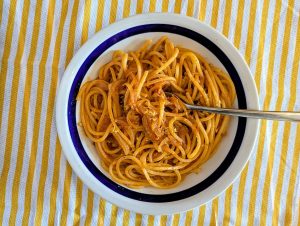 [ad_1] ¿Hay algo que no se pueda comer con pasta? No lo sabemos, pero estamos dispuestos a seguir investigando. Esta receta no es un invento que nos hemos sacado de la manga, se basa en un plato italiano que se hace con ‘nduja. La ‘nduja –ya te hablamos de ella en este vídeo sobre delicias